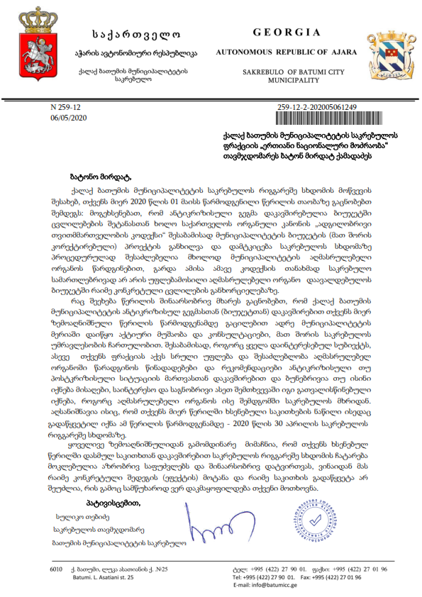 DEPUTY CHAIRMAN OF BATUMI MUNICIPALITY CITY COUNCIL