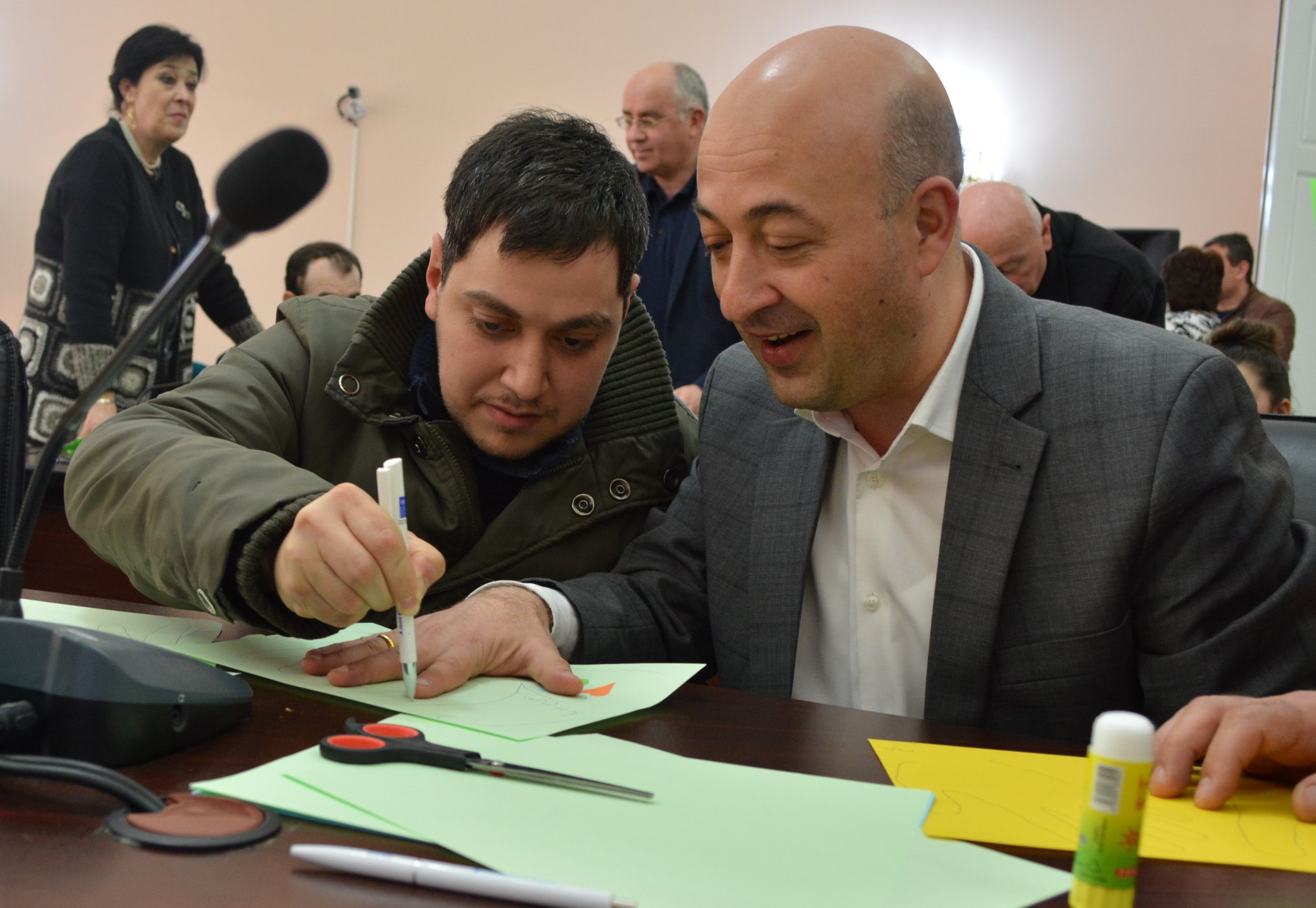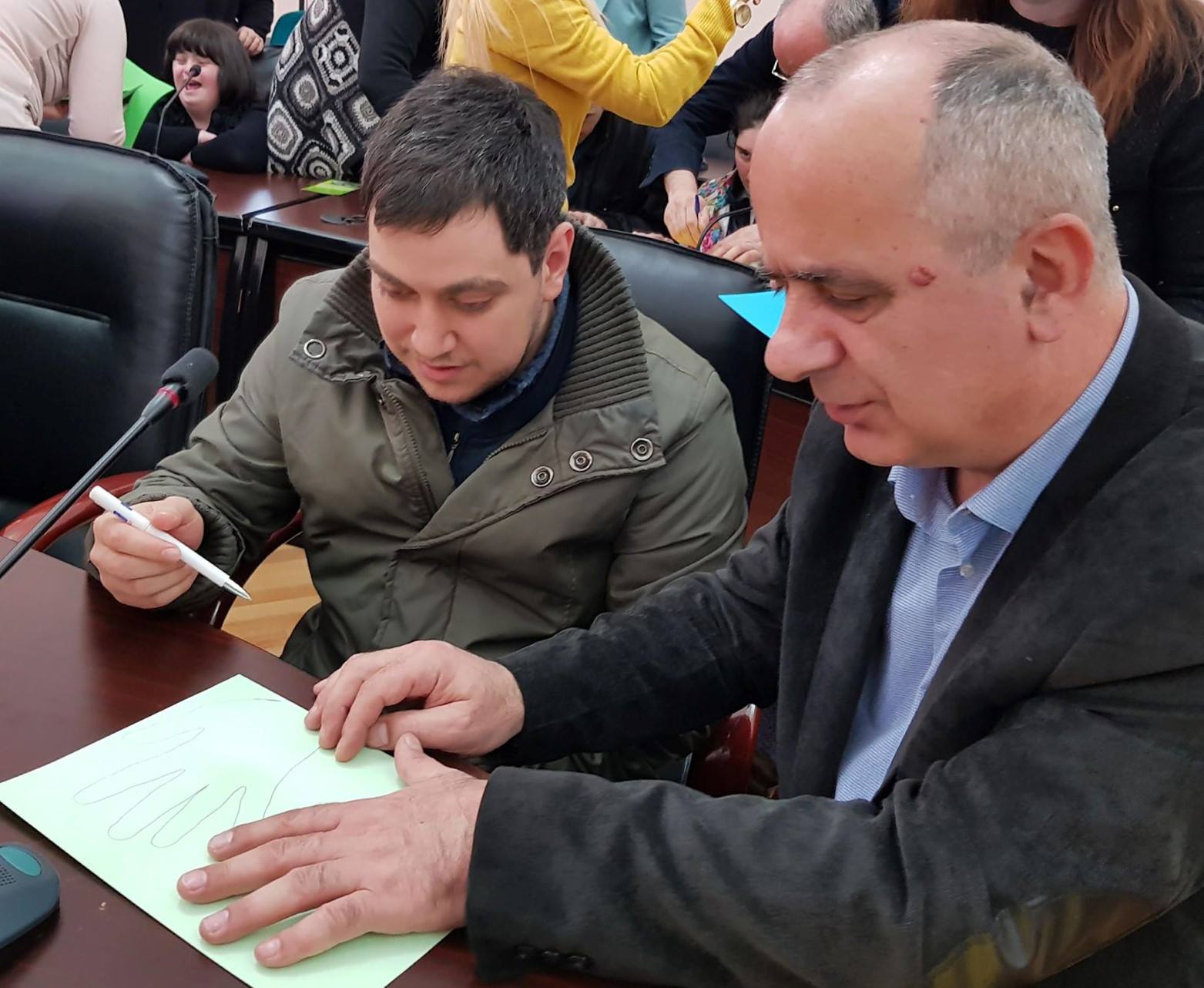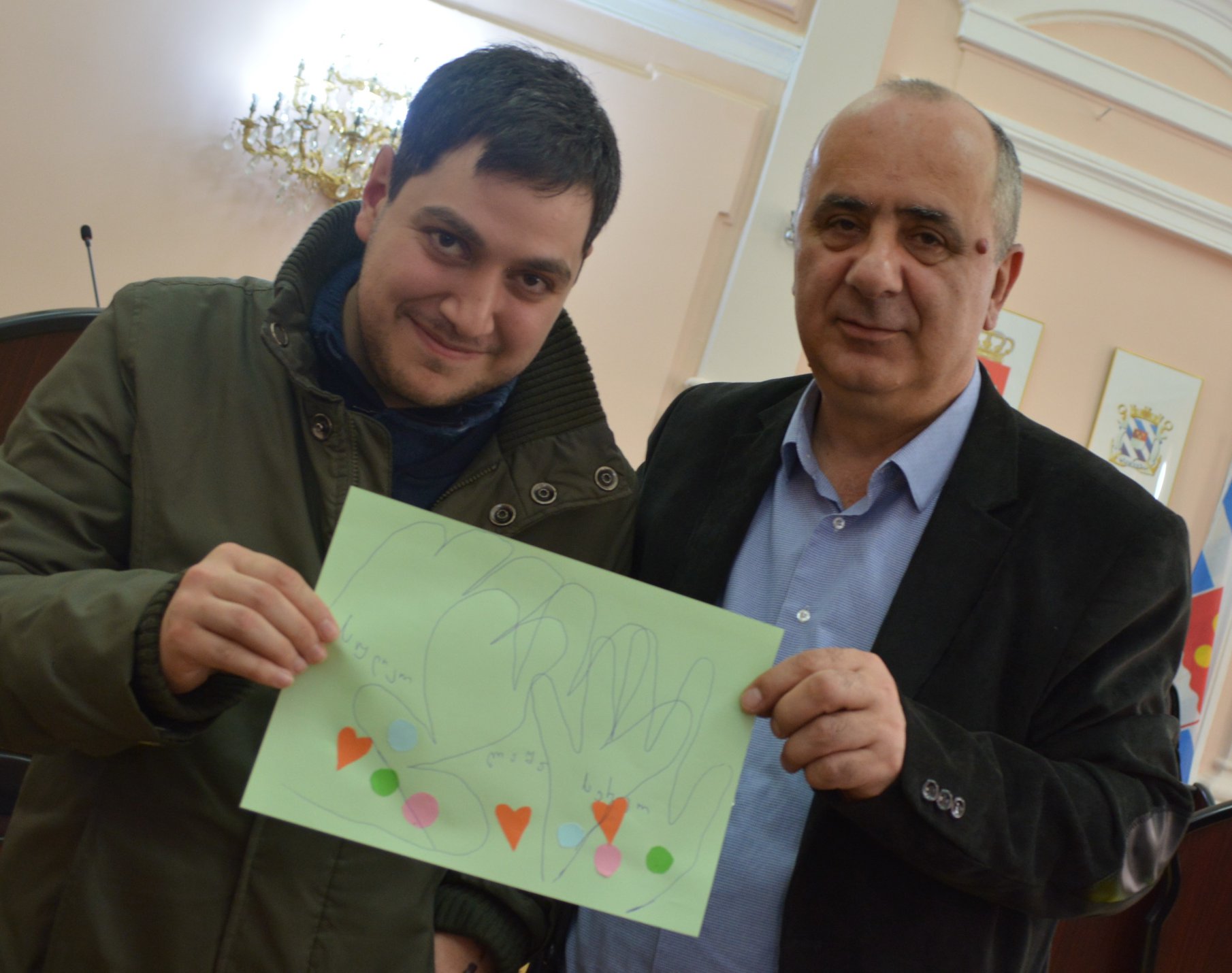 Today, members of City Council hosted beneficiary of rehabilitation center “Tana” connected with the International Day of Down’s Syndrome. The children of the center together with the Chairman of City Council Suliko Tebidze and members created main symbols of the world day of Down’s syndrome, event also attended mayor of Batumi Lasha Komakhidze and Vice-mayor Tengiz Petridze. The members of City Council looked through pictures of the children exhibited in the building of the municipality.