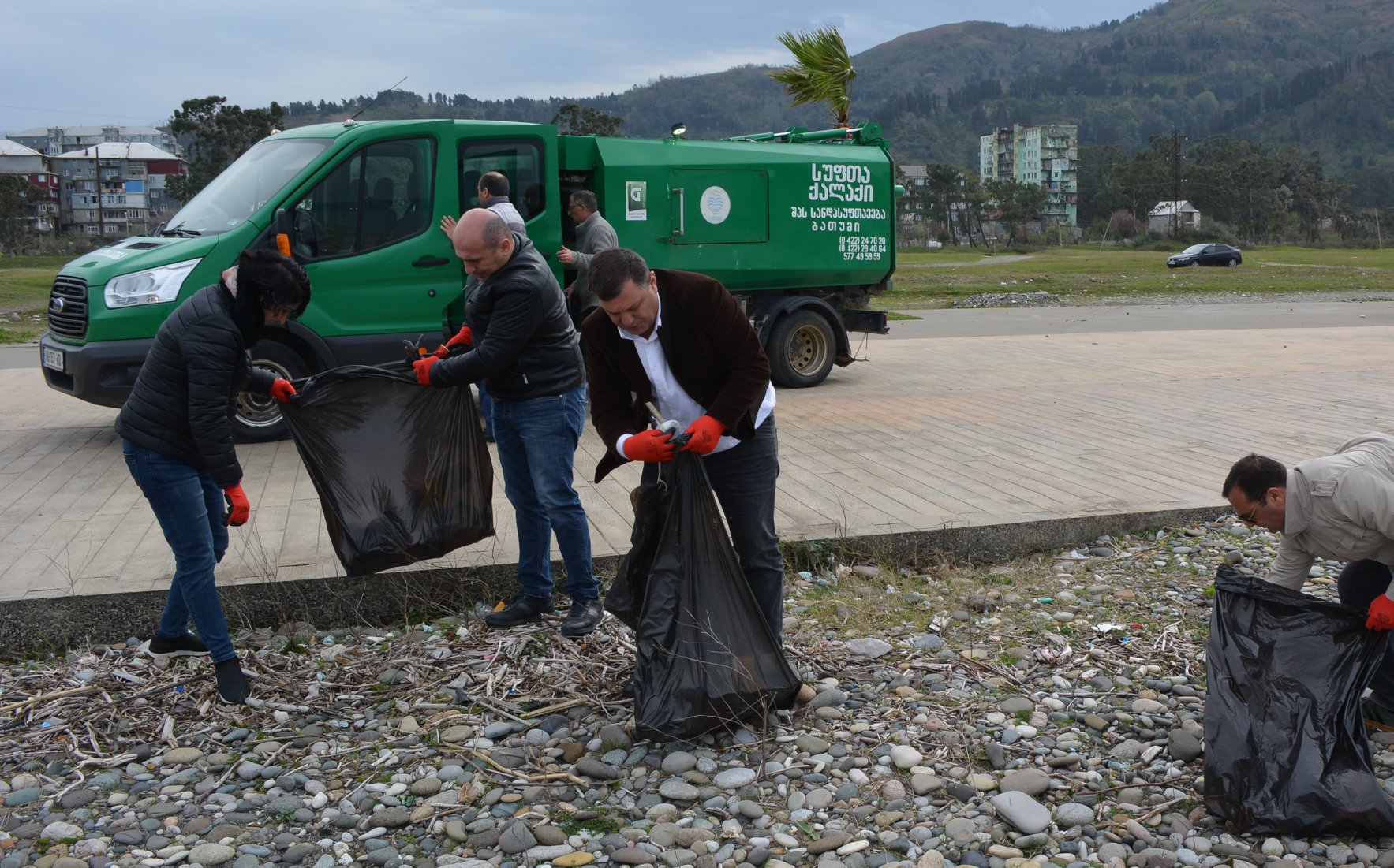 Today, Batumi City Council joined campaign of “International Day of Protection of Water Resources”. Members of City Council and colleagues of administration by the help of Batumi Cleaning Services cleaned seaside and refined from solid waste Gonio coast and nearby territory.