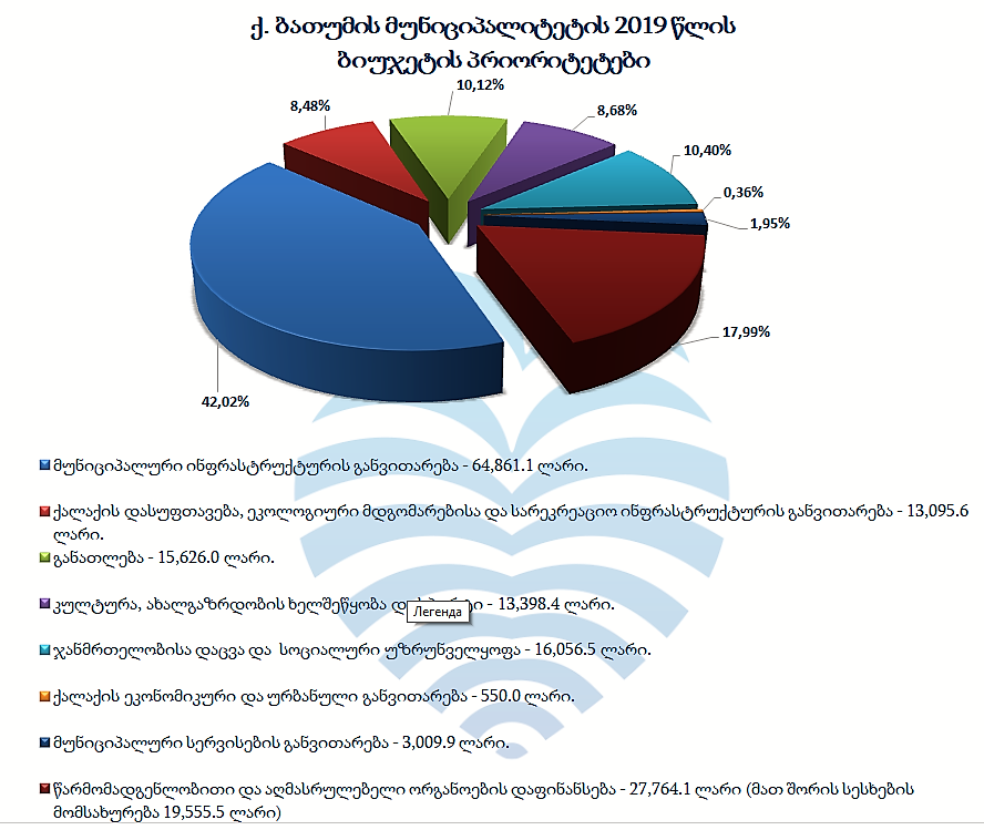 There is ongoing discussion of 2019 year budget of Batumi Municipality, the main financial document is defined by 154 361,6 GEL, the priority directions are still the following: development of infrastructural projects, ecological state and development of recreation infrastructure, education, culture, support of youth, sport, health protection and social secure, economic and urban development of city, development of public services.