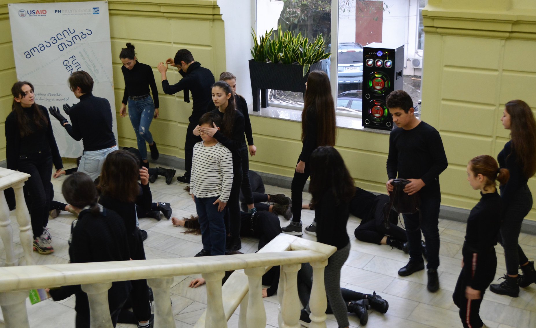 At the end of the meeting pupils of “future generation” on the first floor of the administrative building of Municipality carried out symbolic performance. The 16-days campaign against gender violence is annually celebrated from 1991 year. The 16-days campaign started on 25th of November- on the international day against violence of women and finished on 10th of December-with the day of protection of human’s rights.