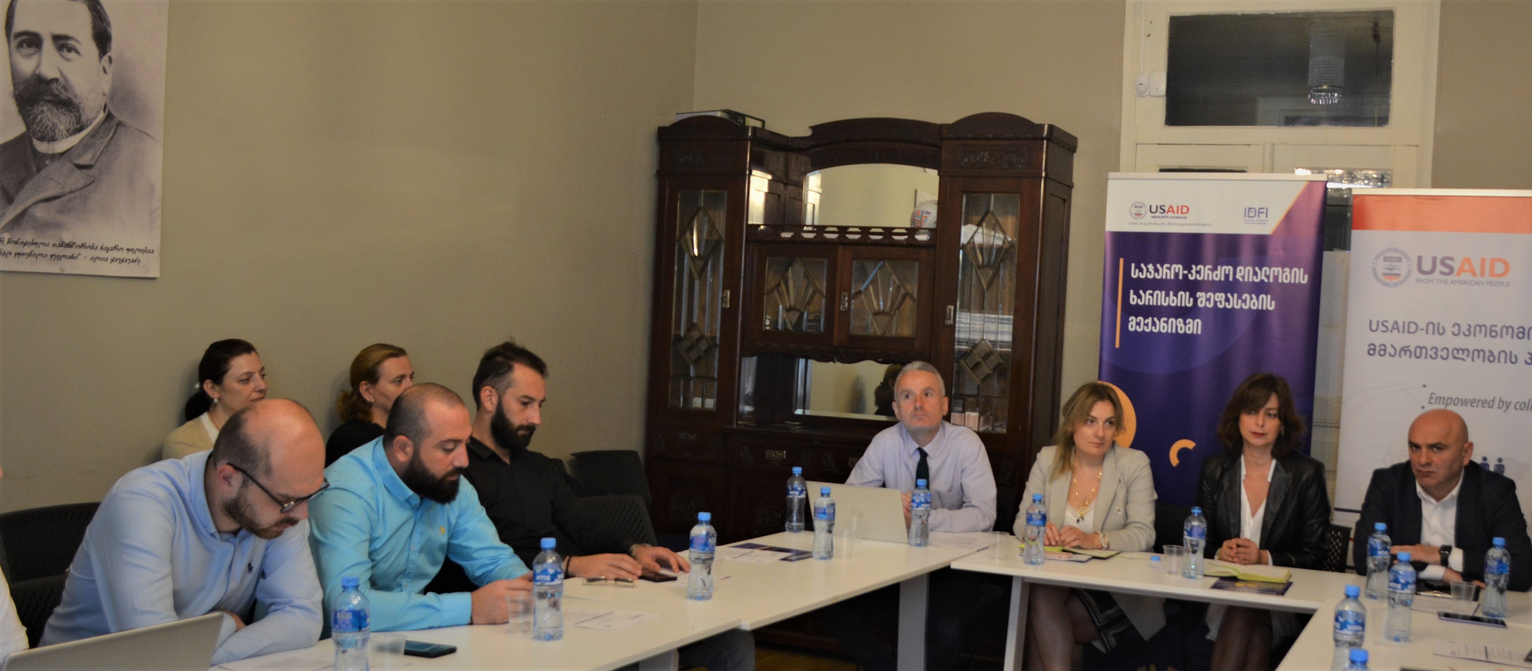 შეხვედრაზე, საჯარო და კერძო დიალოგის ხარისხის შეფასების მექანიზმებზე USAID-ის ეკონომიკური მმართველობის პროგრამის ხელმძღვანელის მოადგილემ ნინო ჩოხელმა, IDFI-ის ეკონომიკური და სოციალური პოლიტიკის მიმართულების ხელმძღვანელმა მიხეილ კუკავამ და ქ. ბათუმის მუნიციპალიტეტის საკრებულოს თავმჯდომარემ რამაზ ჯინჭარაძემ ისაუბრეს.