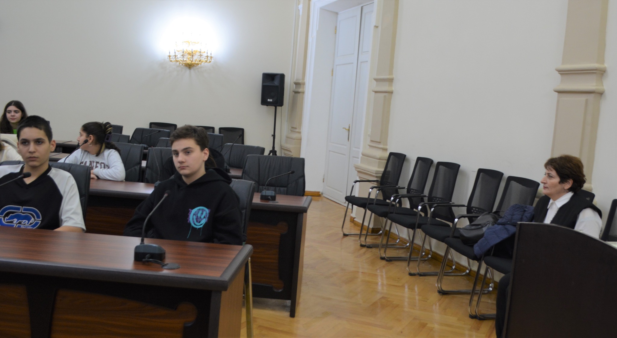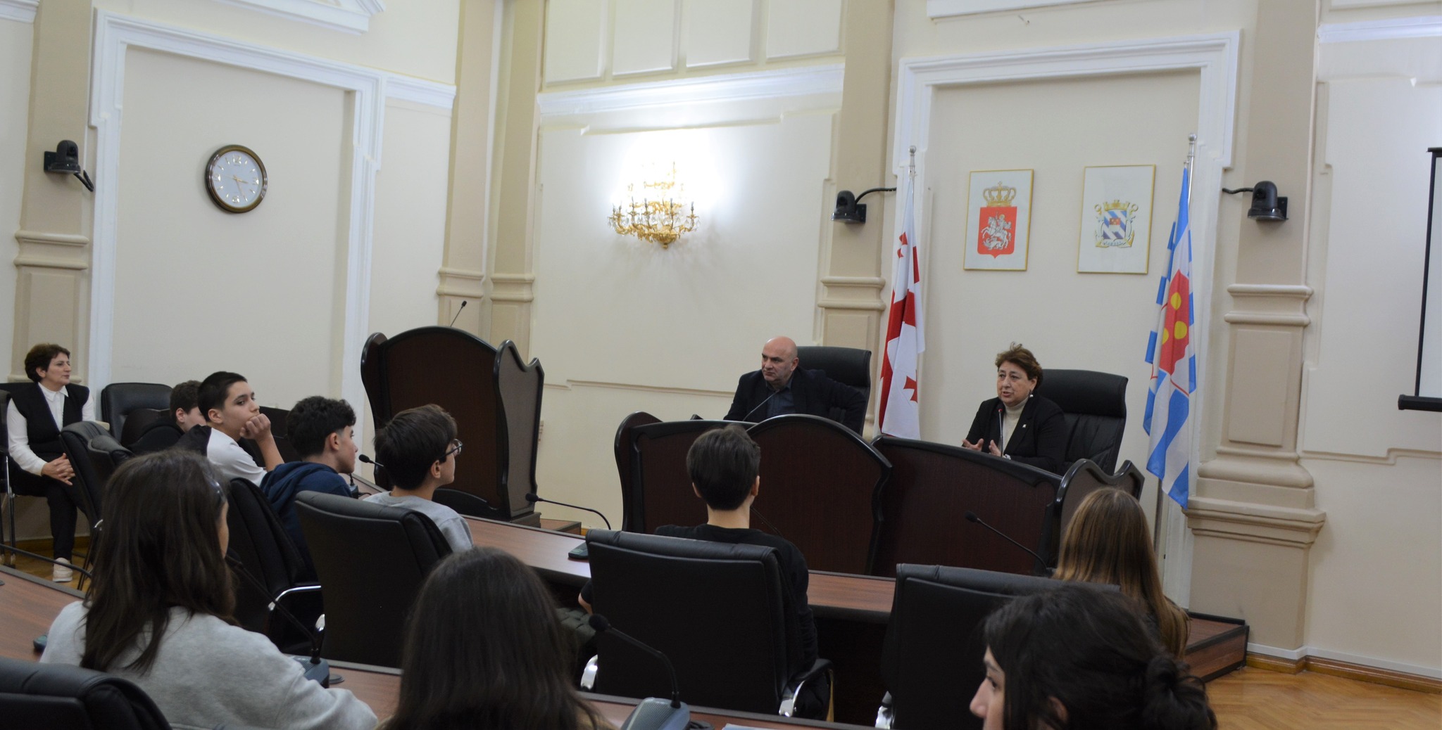 მერვე კლასის მოსწავლეებს ადგილობრივი თვითმმართველობის შესახებ, გასვლითი გაკვეთილი ლუკა ასათიანის სახელობის სხდომათა დარბაზში ჩაუტარდათ.