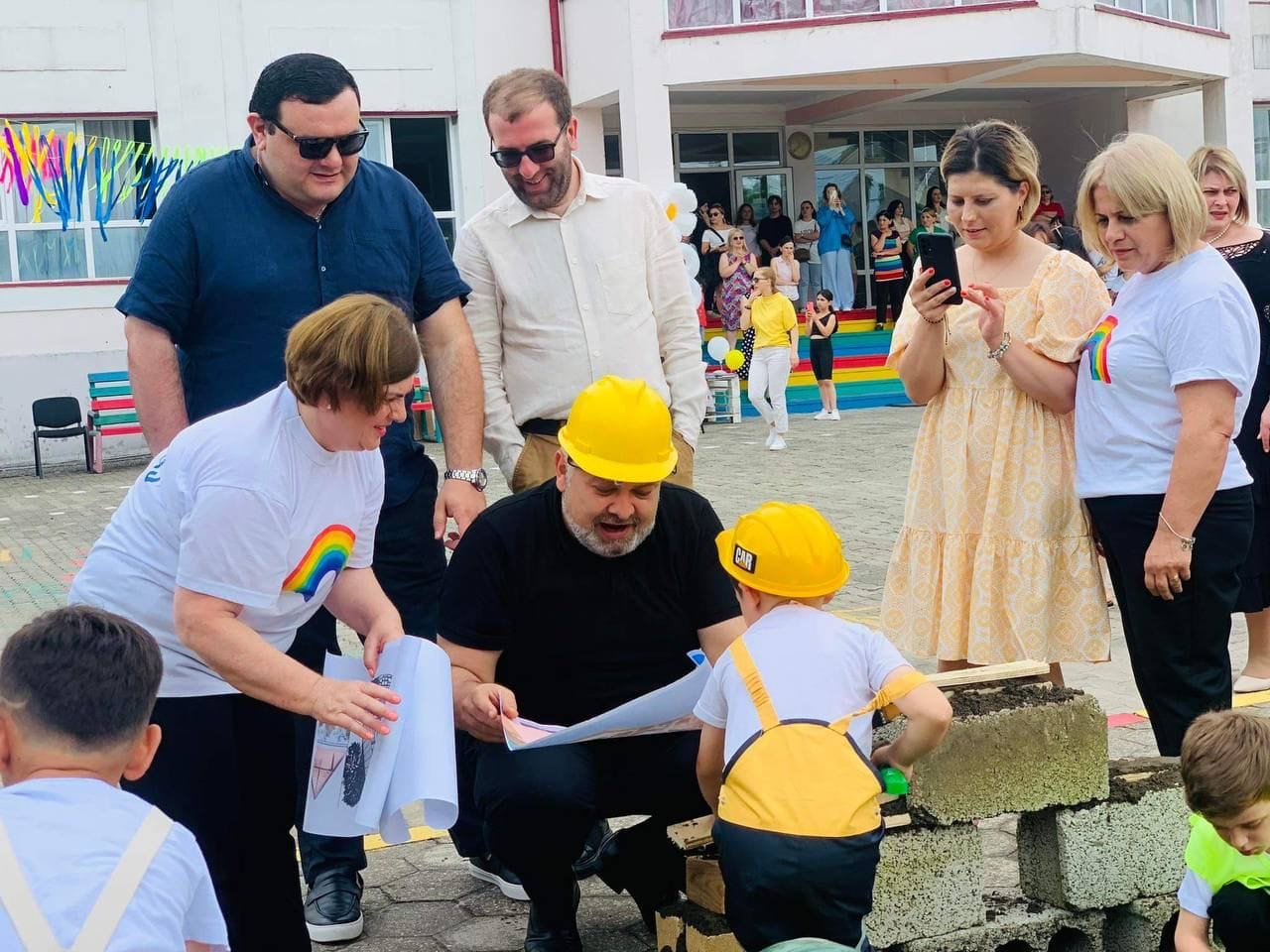 საბავშვო ბაღის ეზოში მოწყობილი გარე სივრცეები საკრებულოს თავმჯდომარის პირველმა მოადგილემ ირაკლი თავდგირიძემ და საბავშვო ბაღების გაერთიანების დირექტორმა დავით დიასამიძემ დაათვალიერეს.