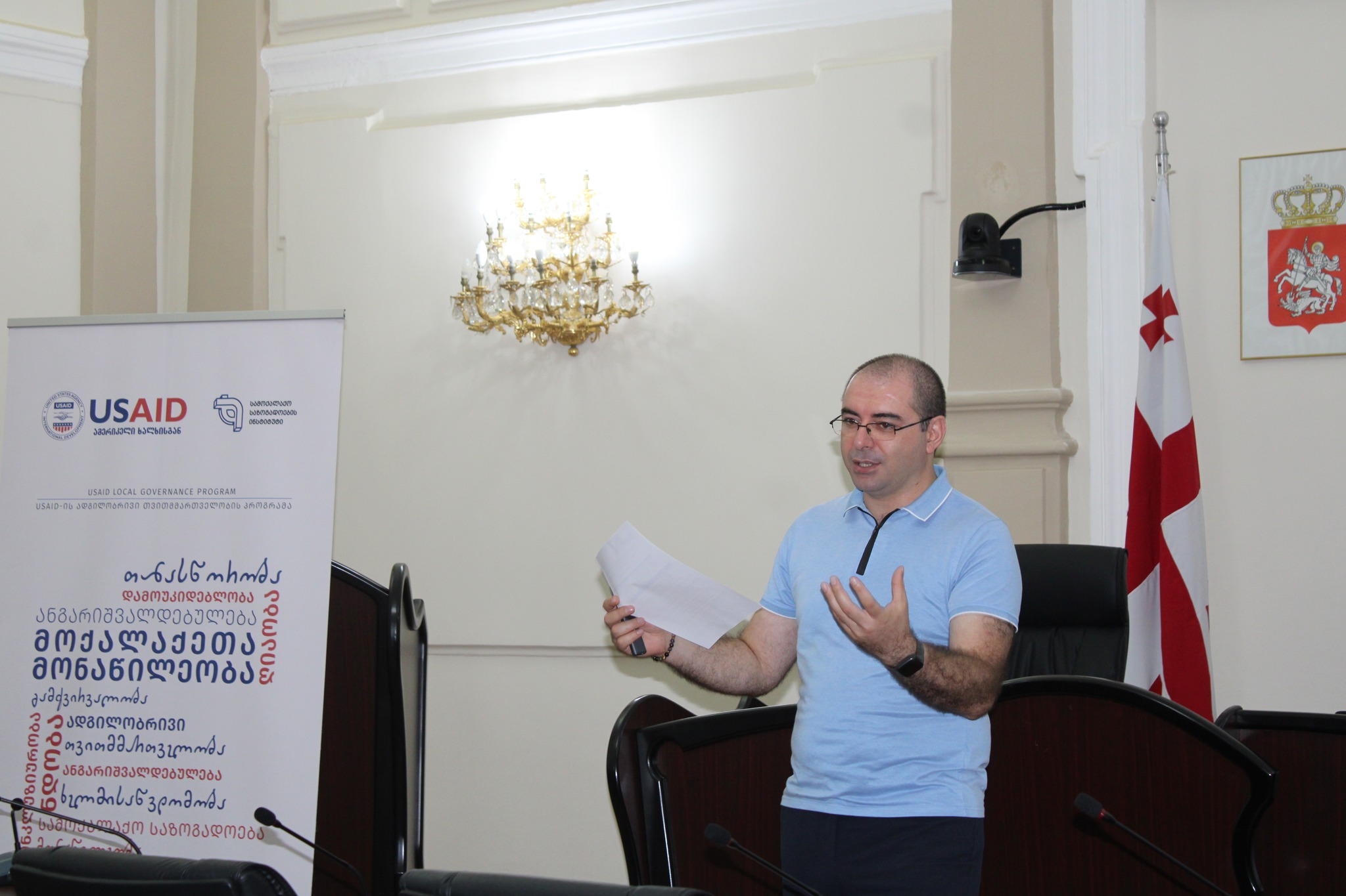 ტრენინგის თემა გახლდათ „მუნიციპალიტეტის საქმიანობაში მოქალაქეთა მონაწილეობის გაძლიერება“ და ,,საკრებულოს წევრის ანგარიშვალდებულება“. მონაწილეებმა კიდევ ერთხელ მიმოიხილეს საკრებულოს ძირითადი უფლებამოსილებები, საფინანსო-საბიუჯეტო უფლებამოსილებები, აღმასრულებლის კონტროლის მექანიზმები, ქონების მართვა-განკარგვა, პროცედურული საკითხები, საკრებულოს წევრების ანგარიშვალდებულების კანონით გათვალისწინებული ფორმები, ამომრჩეველთან კომუნიკაციის თემები და საკრებულოს წევრის ანგარიშვალდებულების ინოვაციური მექანიზმები.