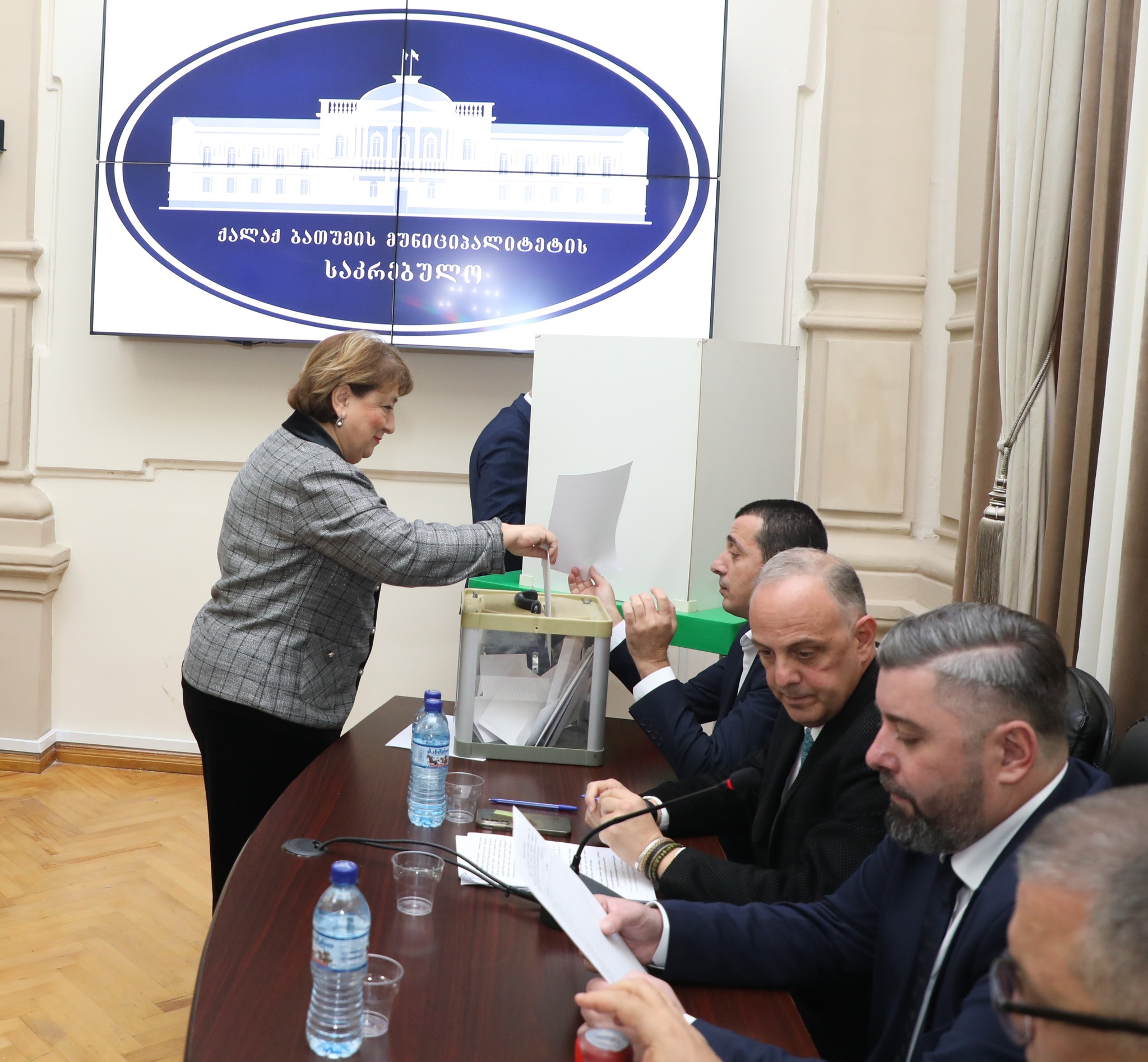 სხდომაზე, დროებითი სამანდატო კომისიის ფორმირების შემდეგ, უმრავლესობის წარდგინებით, საკრებულოს თავმჯდომარის თანამდებობაზე ივანე მაისურაძის კანდიდატურა დასახელდა, რის შემდეგაც ფარული კენჭისყრით, საკრებულოს წევრებმა მეექვსე მოწვევის საკრებულოს თავმჯდომარედ, 22 ხმით, ივანე მაისურაძე აირჩიეს.