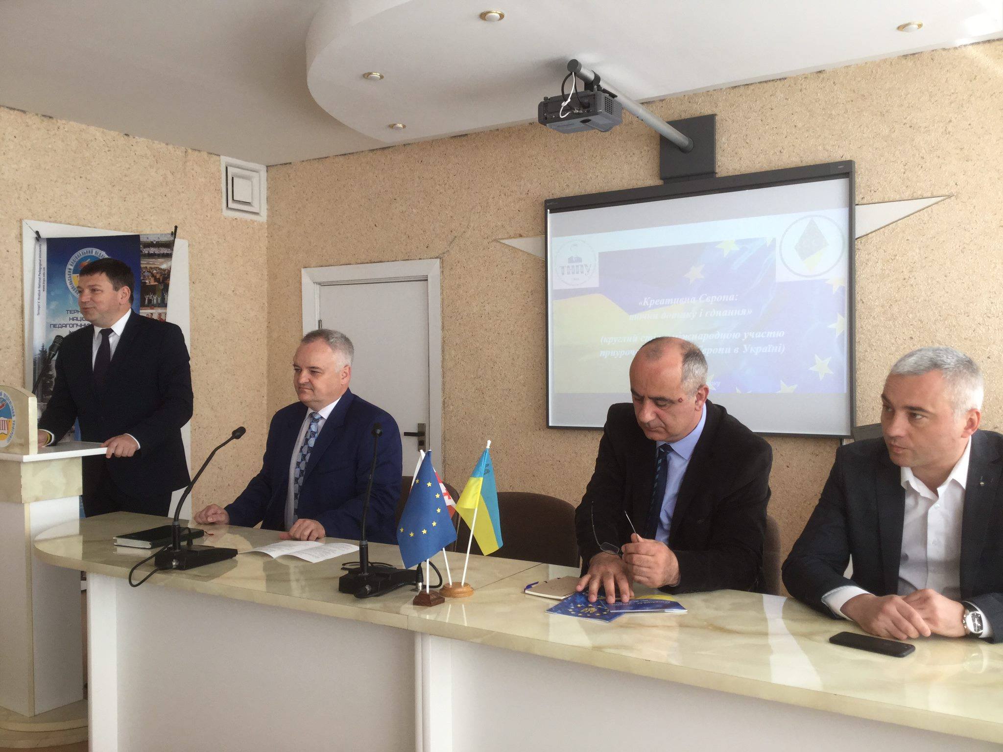 21 მაისს „კრეატიული ევროპის“ ფარგლებში შეხვედრა გაიმართა ქალაქ ტერნოპოლის ეროვნული პედაგოგიური უნივერსიტეტის პროფესორ-მასწავლებლებსა და სტუდენტებთან. ღონისძიებას ესწრებოდა ქალაქ ტერნოპოლის ვიცე-მერი ლეონიდ პიცურა. 22 მაისს კი დელეგაცია ტერნოპოლის სახელმწიფო უნივერსიტეტის იურიდიული ფაკულტეტის სტუდენტებსა და დეკანს სერგეი ბანახს შეხვდნენ.