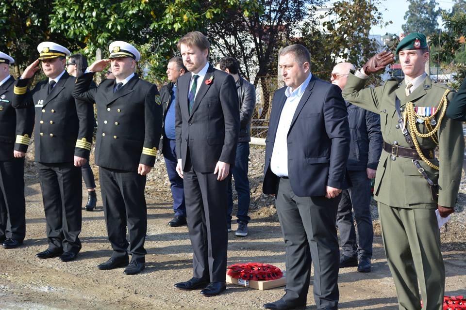Today, the Chairman of Batumi City Council Lasha Sirabidze and the Deputy Chairman Irakli Chavleishvili with the Ambassador of Great Britain in Georgia Justin McKenzie Smith and with British Defense Attaché in Georgia David Ethell, honored memory of British soldiers who died during the First World War and graced memorial with wreath. The event attended representatives of the coastal guard of border police department of The Ministry of Internal Affairs of Georgia and members of British royal orchestra. Collaboration of Batumi City Council with British Embassy connected with the discovery of graves of British soldiers who died during the World War, settlement of the graves and installment of the memorial lasts for almost five years.