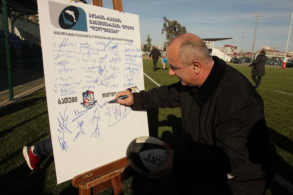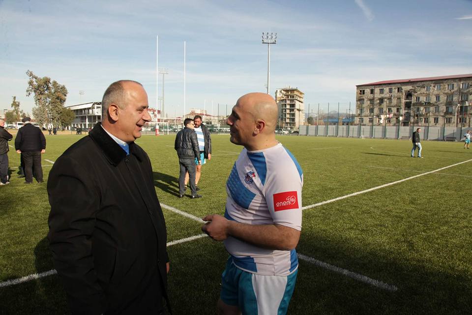 Today was carried out event dedicated to the 27th anniversary of the Rugby Club foundation on Batumi Rugby Stadium, in frames of this event veteran rugby players hold friendly match. The event attended the Chairman of Ajara Government Zurab Pataradze, representatives of executive and legislative organs. At this event were also presented the Chairman of Batumi City Council Suliko Tebidze and the members of new and old summons of City Council. The Chairman of Ajara Government awarded veteran rugby players and thanked veteran and young players for the contribution in the development of rugby; also he thanked “Cartu Group” which has great dotation in the creation of rugby complex according to the modern standards and in the popularization of rugby game in the country.