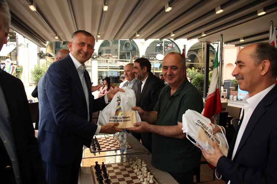 In order to make popularization of the Olympiad, the event was carried out on Batumi Piazza; especially on this day 100 chess tables were installed on Batumi Piazza, where symbolically participants of Olympiad were presented. Around chess table were represented diplomatic corps, where were involved the president of Europe Chess Union-ZurabAzmaiparashvili and the president of Georgian Chess Federation Giorgi Giorgadze. One more goodwill ambassador was named on 43th Chess Olympiad-NikolozRatchveli. The goodwill ambassadors of 43th Chess Olympiad are: Nona Gaprindashvili, Maia Chiburdanidze, VishvanatanAnandi, Anita Ratchvelishvili and LashaTalakhadze.
